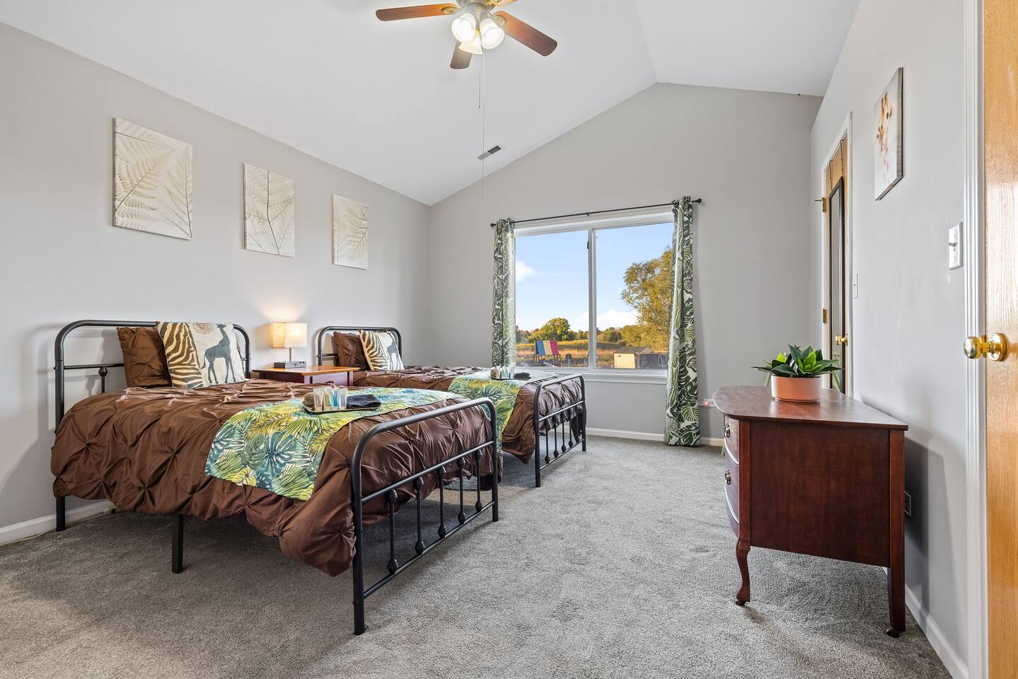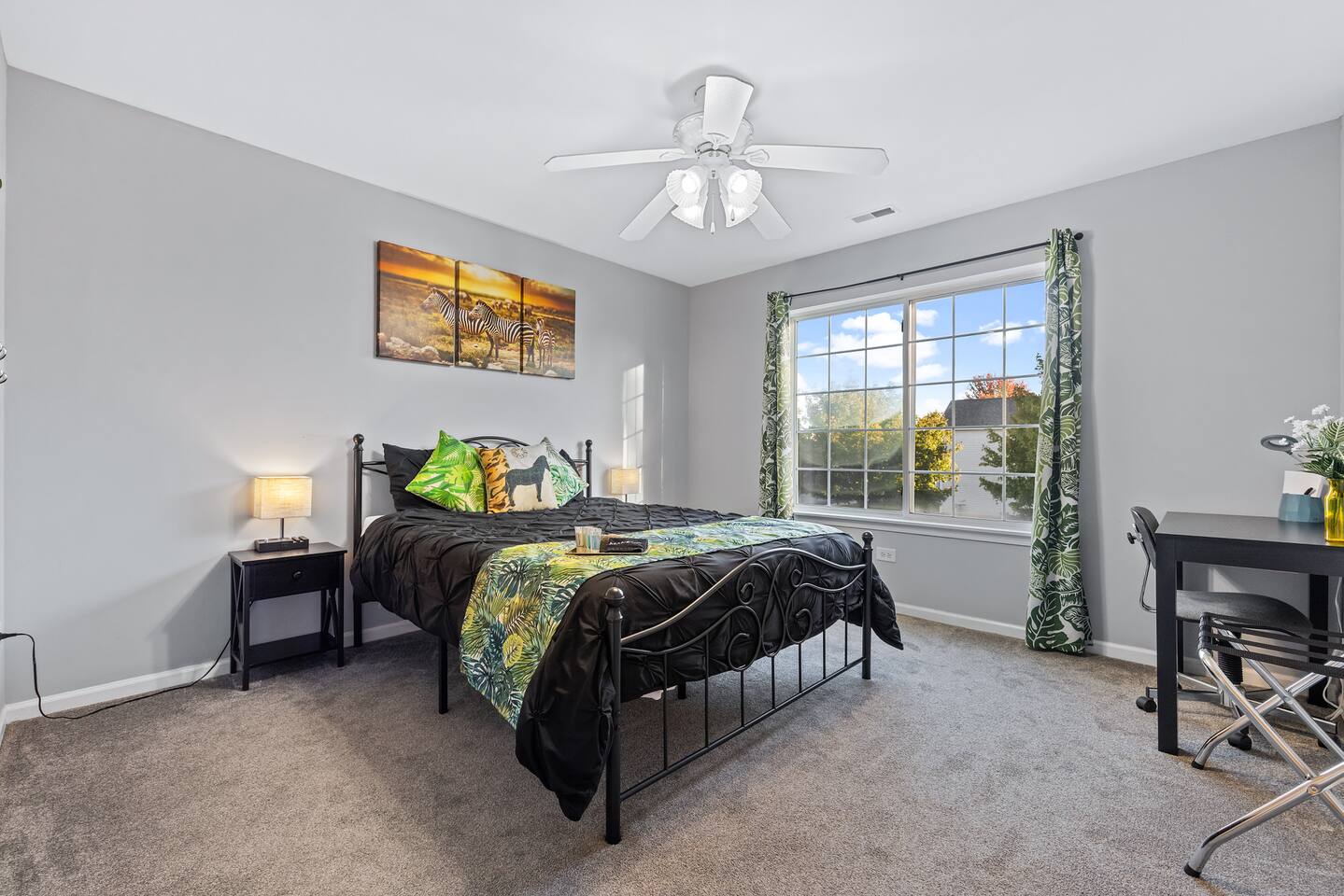 Discover a unique jungle-inspired getaway in a quiet, spacious neighborhood. Perfect for families and pet lovers, this home features a fenced backyard with a BBQ and outdoor seating for relaxation. Enjoy nearby activities such as fishing, a water park, parks, a zoo, scenic trails, go-karts, golfing, mini golf, and shopping just minutes away. Key Details ★Pets Welcome (ck rules) ★Free Driveway Parking (no garage access) ★No Parties, Events, Smoking, or Vaping Indoors ★60 mins to Chicago