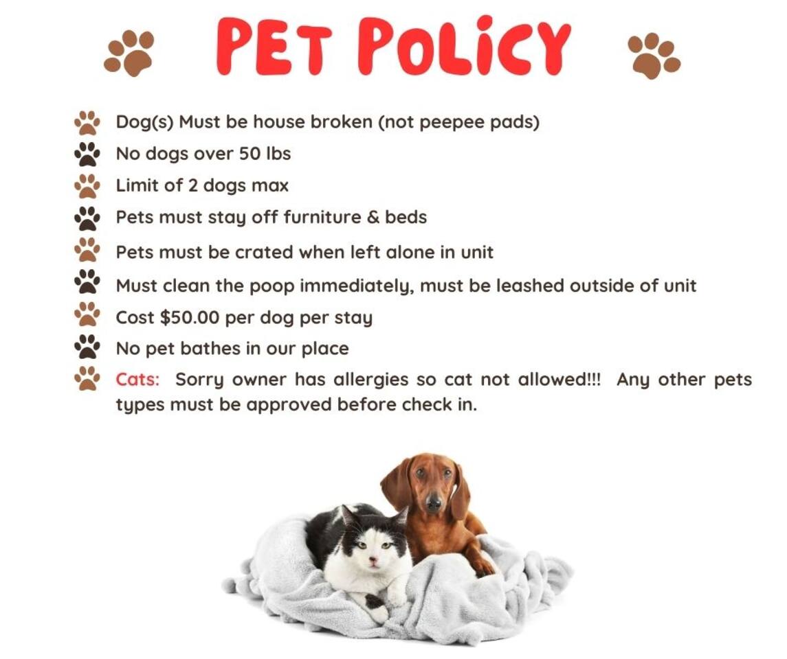 ★ ★ ANIMAL FEES & Rules ★ ★ ALL ANIMALS MUST BE APPROVED WITHIN 24 HRS OF BOOKING, INCLUDING INSTANT BOOKINGS. ★The animal fee is $50 per animal per stay. Max dog size 50lbs NO CAT ALLOWED (owner allergic) , any damage to furniture is at the owner's expense. NO MORE THAN 2 ANIMALS IN THIS APARTMENT - PROPERTY MANAGEMENT RULES. ★ House-broken animals only. Animals other than dogs must remain in their protected environment (fishbowl, cage, etc., as applicable). Dogs must be taken out for their potty breaks, no pee pee pads only trained dogs. Dogs must be crated when left alone in the apartment. Animals are not allowed on the furniture. If you say it’s a service animal & Comfort, it must never be left alone in the home without you. You are responsible to clean up dog waste in the yard immediately.. Fines for dog waste is 50.00 and up extra cleaning fee depending on amount left behind.. ★ When bringing animals, check-out time will be 1 hour earlier, to give our cleaners a little more time to prepare the unit for the next guests. ★ Not allowed to give your pet a bath in our place. ★Announced pets 100.00 fine. MUST be included in reservation and pet extra cleaning fees are 50.00 per pet even service animals. We don’t charge for service animals, but there’s an extra cleaning fee included. Platform only allows you to pay for 1 animal, the second one you will be receiving a request for money. ★Announced guest is $100 per person per night. NO MORE THAN 6 PEOPLE ALLOWED IN HOME. Montgomery is unincorporated and does not allow this.