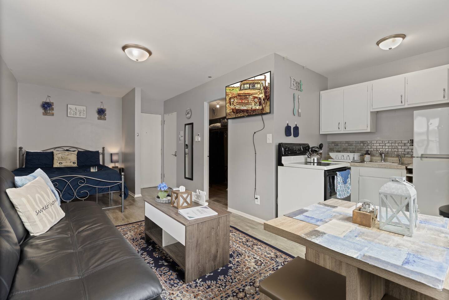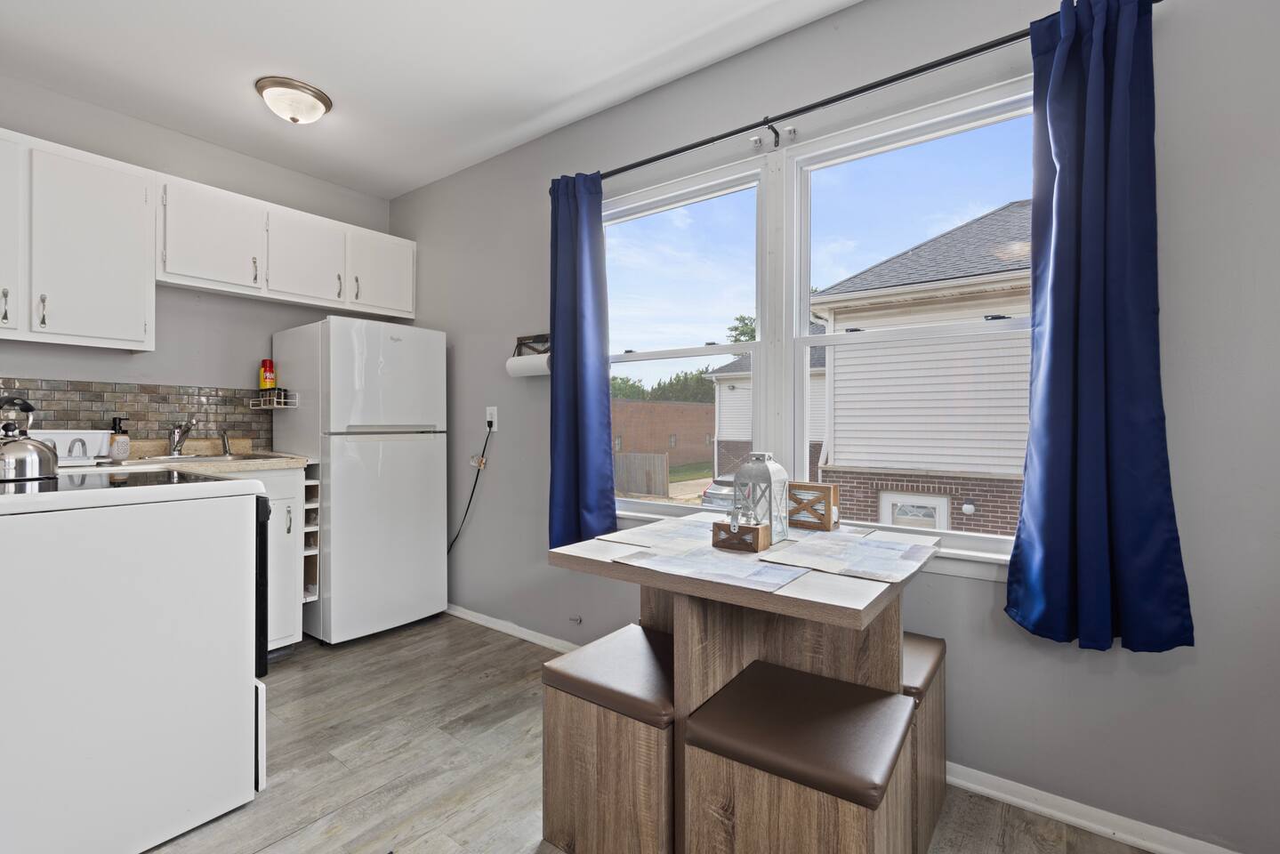 So much more comfortable than a hotel. Aurora has so much to do downtown and shopping at the Premium Outlet mall. Paramount theater, Hollywood Casino, Movie Theaters, Water parks, Phillip's Zoo, Golf courses and still within an hour from Downtown Chicago or Starved Rock. Whether you're seeking a romantic getaway or a peaceful retreat, this Rustic-themed small studio apartment is the perfect haven. Immerse yourself in the cozy atmosphere, unwind in the comfortable queen bed, make use of the versatile futon, and create culinary delights in the fully stocked kitchen. Your rustic retreat awaits you! Pet friendly See Pet rules- 1 dog max under 50lbs. ★★Amenities★★ ★Climate Control: Air conditioning & heating Kitchen: ★Bakeware & cookware ★Glasses, dishes, bowls, wine glasses ★Silverware for Adults ★Knife block ★Basic spices, pots, and pans ★BBQ utensils ★Blender ★toaster ★Keurig ( K-cups) ★Tea kettle ★microwave ★Cutting boards ★mixing bowls ★Diningroom table for 2 Bath: ★Bathtub/shower combo, hair dryer, body soap, shampoo, conditioner Laundry: ★Full-size washer & dryer coin operated in the Laundry room located in the lobby Parking: ★1-car space by yellow signs on side or back fence + street parking Extras: ★Iron & ironing board ★Fan ★Room-darkening curtains ★FREE High-Speed WiFi ★Desk/workspace ★Small dresser or hanging drawers ★Extra pillow, sheet, and plush for the Futon Bedroom area ★Queen-size 12-inch foam mattresses with firm pillows ★Full Size Futon ★Soft 1800-thread-count cotton sheets ★Small dresser ★full-length mirror ★Lamps with USB plugs With all the comforts of home and easy access to Chicago's attractions, this cozy getaway is perfect for your next stay! You will be asked to submit IDs for all adults that are going to be staying in this apartment. There's a ring doorbell camera on the OUTSIDE of this apartment, the doorbell can be rang for assistance.
